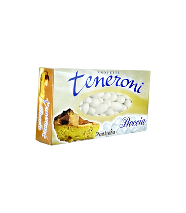 Confetti con mandorla tostata ricoperta di cioccolata al gusto della torta pastiera, avvolti da un sottile strato di zucchero.