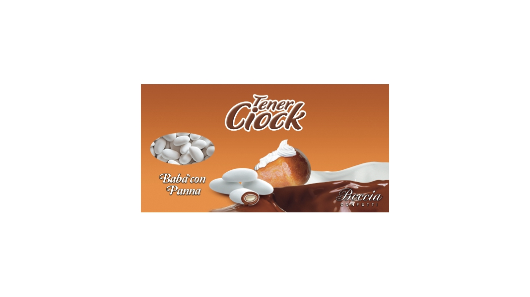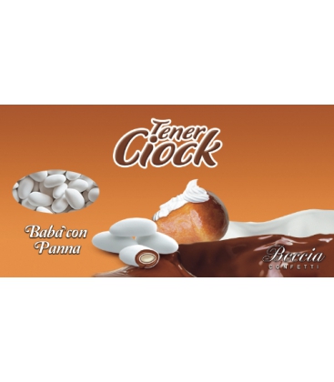 Confetto con morbida anima di cioccolata bianca e ricoperta di un lieve e gustosa crema al gusto di babà con panna.